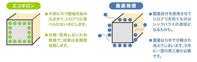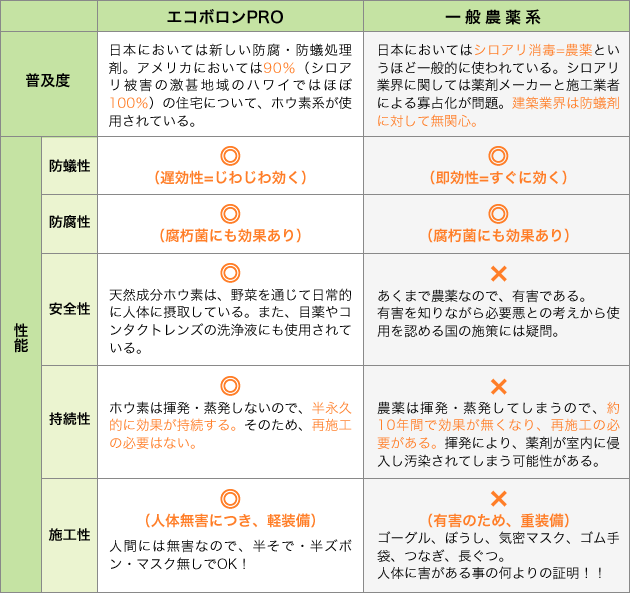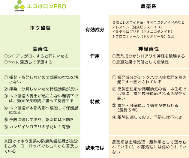 エコボロン(ホウ素系)と農薬系防蟻剤との比較